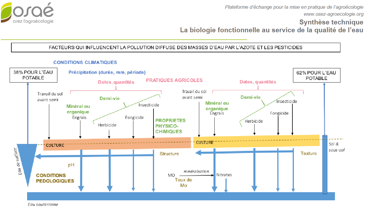 | Cette publication d'Osaé se penche notamment sur les facteurs influançant le ruissellement et la lixiviation des nitrates et des pesticides ou les modes d'action des infrastructures agroécologiques pour limiter la pollution de l'eau. |