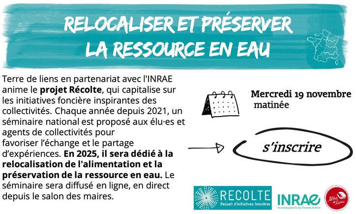 | WEBINAIRE - Nourrir et préserver nos territoires en agissant sur le foncier agricole Mercredi 19 novembre 2025 - 10h/12h30 | | |