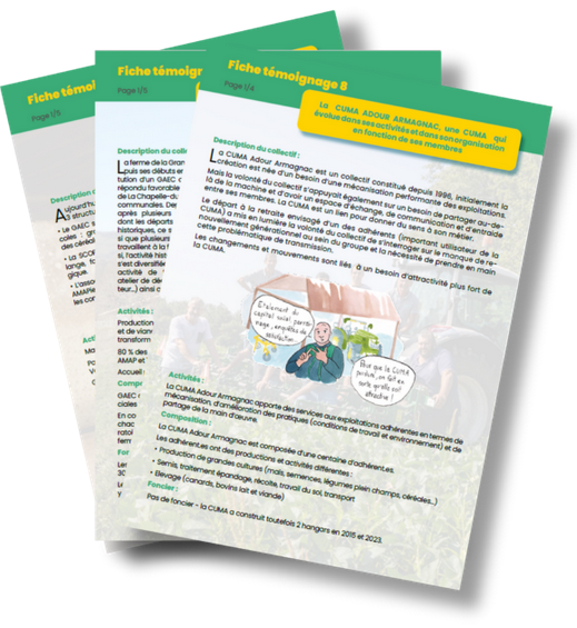 | Ces fiches témoignages sont destinées à des accompagnateurs-trices et des membres de collectifs comme base de réflexion dans le cadre d’une transmission au sein de collectifs. Elles ont été rédigées dans le cadre du projet Recoltera. Ce projet multi-partenaires a étudié les questions de transmission au sein des collectifs à vocation économiques, et les leviers mobilisables pour en assurer leur pérennité. |