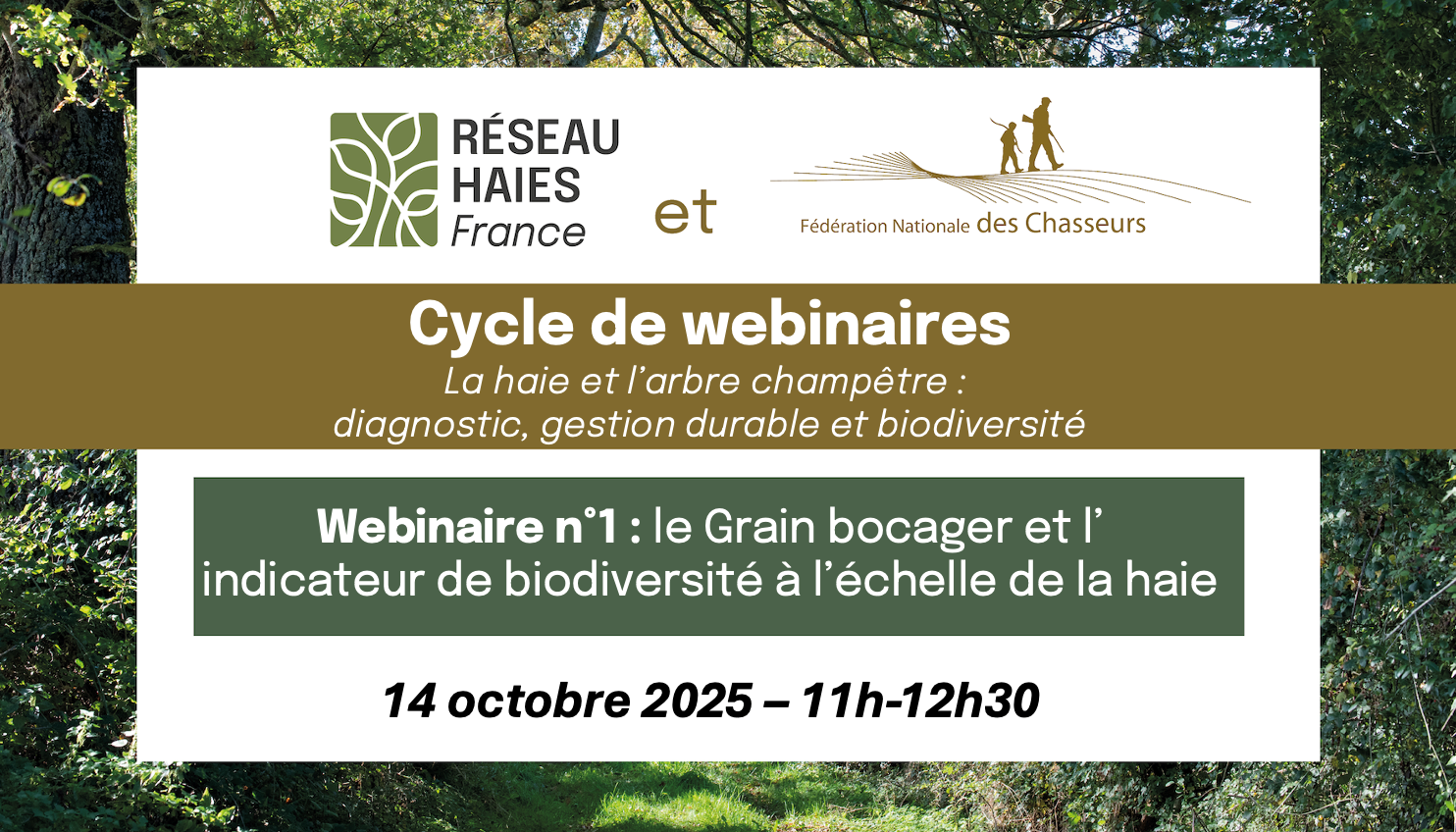 | WEBINAIRE - le Grain bocager et l'Indicateur de Biodiversité à l'échelle de la Haie Mardi 14 octobre 2025 - 11h/12h30 | |