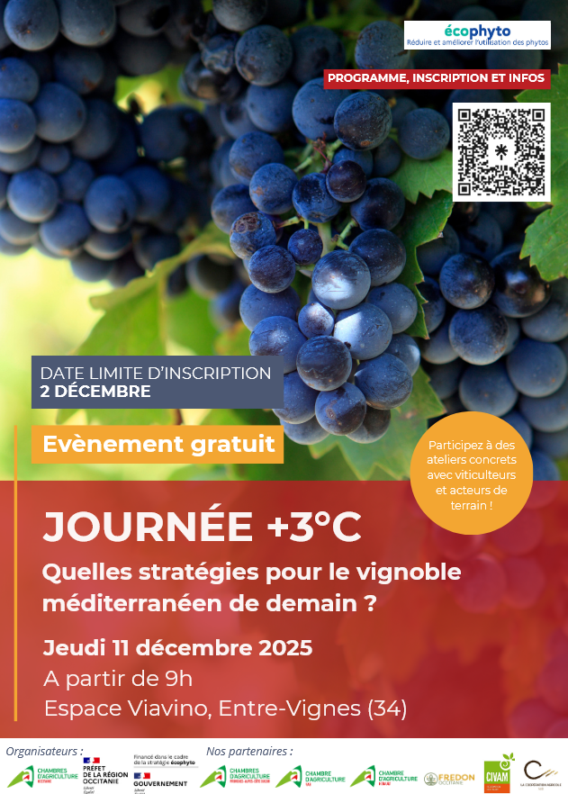 | JOURNEE +3°C Quelles stratégies pour le vignoble méditerranéen de demain ? Jeudi 11 décembre 2025 - Entre-Vignes (34) | | |