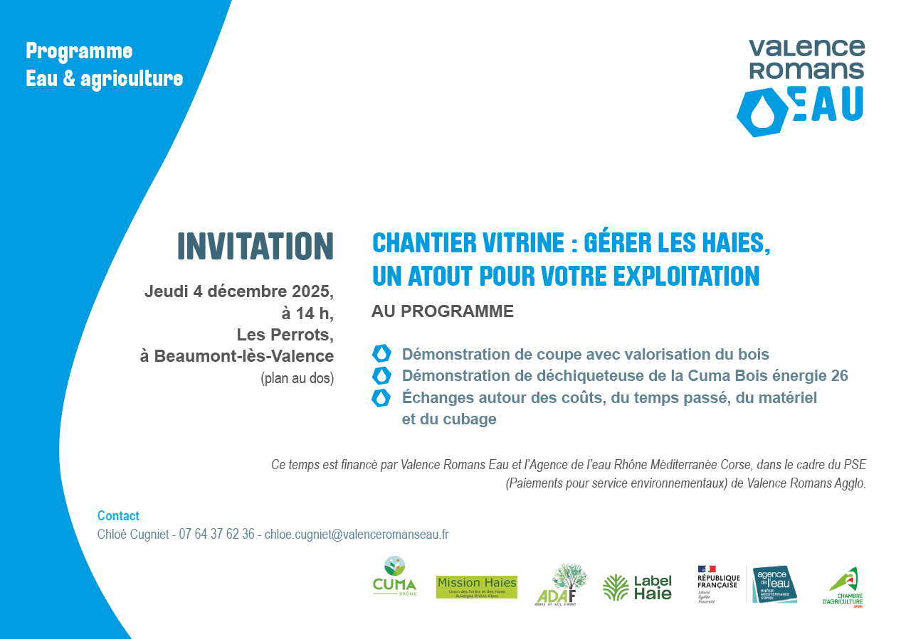 | Chantier vitrine - Gérer les haies, un atout pour votre exploitation Jeudi 4 décembre 2025 - 14 h - Les Perrots, Beaumont-lès-Valence (26) | | |