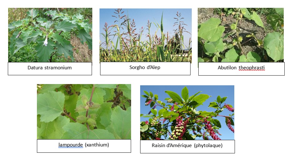 | Parfois toxiques, ces adventices, vous compliquent le désherbage ? Valence Romans Eau vous invite à une demi-journée dédiée aux dicotylédones difficiles : Datura stramonium, Sorgho d’Alep, Abutilon Theophrasti, Lampourde, Raisin d’Amérique. |