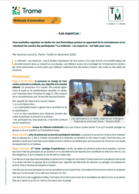 | La méthode « Les expert.es » vise à faciliter l’expression de tous autour d’un sujet donné (une problématique de fonctionnement dans un collectif ou une équipe, une réflexion autour de la stratégie de l’entreprise) et à échanger entre partenaires ou entre pairs pour élaborer collectivement des leviers d’action, des outils ou des pistes de solutions… |