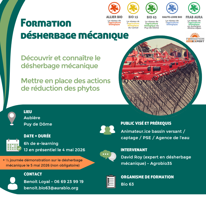 | Echanges techniques autour du désherbage mécanique Mercredi 14 janvier 2026 - 9h30/12 - Pusignan (69) | | |