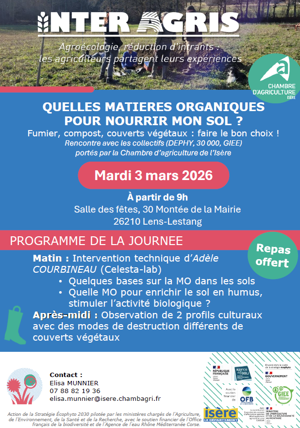 | InterAgris 2026 - Quelles matières organiques pour nourrir mon sol ? Mardi 3 mars 2026 - Lens-Lestang (26) | | |