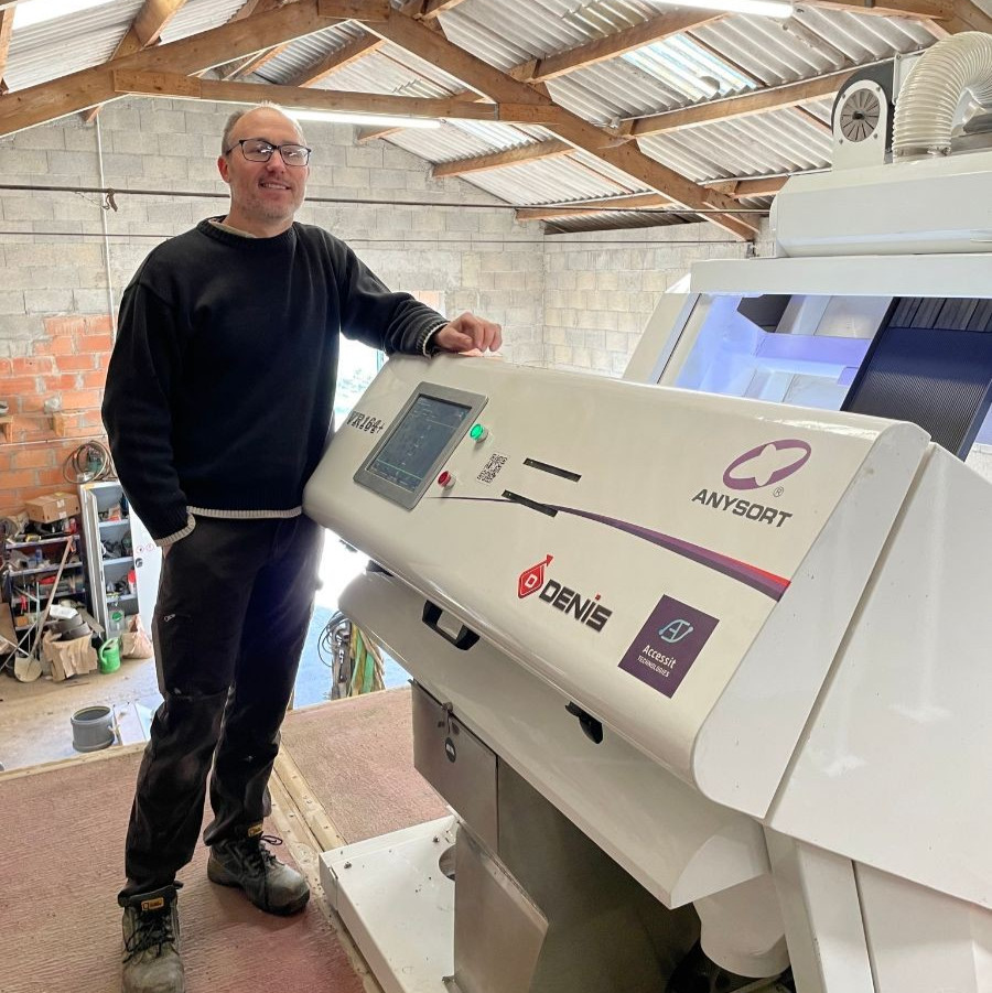 | Cédric Mercier, gérant de l’EARL Mercier, exploitation agricole en agriculture biologique à Saint-André sur Vieux Jonc (01) diversifie son activité. En plus de ses 140 ha en polyculture élevage et ses 30 vaches allaitantes, Cédric a investi dans une chaine de triage de céréales qu’il utilise aussi pour trier les semences herbacées qu’il récolte depuis 3-4 ans. |