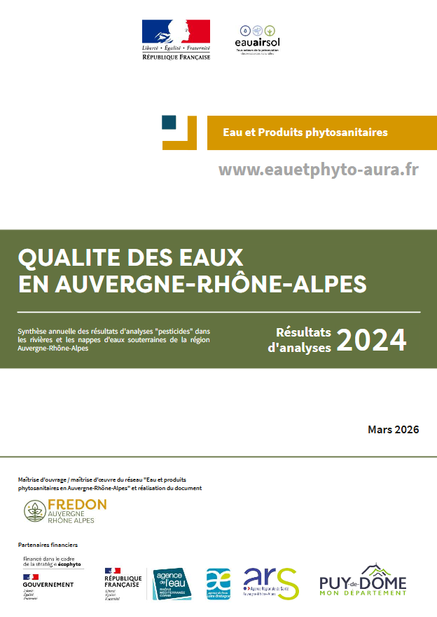 | FREDON AURA est heureux de vous communiquer la nouvelle brochure « Qualité des eaux en Auvergne-Rhône-Alpes ». Ce document vous propose une synthèse des résultats d'analyses « pesticides » 2024 dans les rivières et les nappes souterraines de la région, établie d'après les données bancarisées sur NAIADES et ADES. |